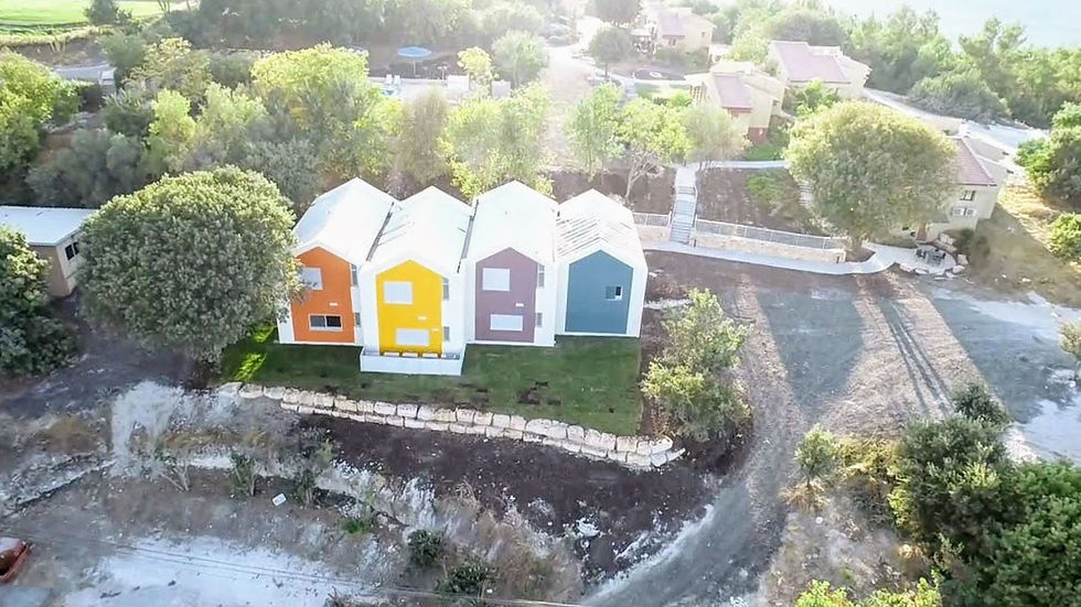 המבנה מכיל 4 דירות עבור 24 מתנדבים ודירה מונגשת לבעלי מוגבלויות.